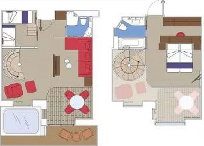 | YJD - Yacht Club Duplex Suite s vírivkou 46 m² + balkón 30 m². Vírivka. 2 podlažia, šatník, 2 kúpeľne (1 s vaňou). Max 4 osoby. 16. paluba. Cenový model MSC Yacht Club. | 10 230 € 10 230 € za osobu | ||